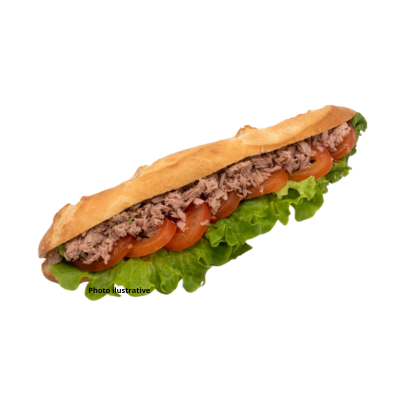 Nous composons notre sandwich de généreuses portions de thon, mélangées à une sauce légère et crémeuse. Ensuite, nous plaçons le mélange dans un pain croustillant et moelleux. Ce pain est garni de salade et tomates juteuses. Ainsi, cela crée une harmonie parfaite entre tous les ingrédients.